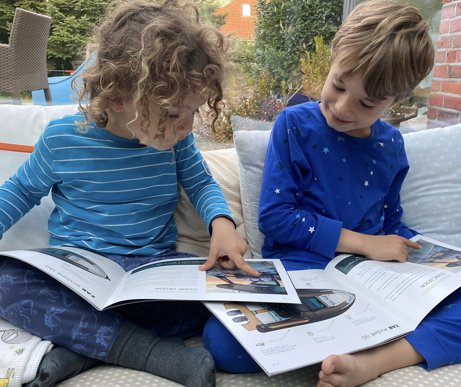 Born to be ZARISTI! Liam und Luis sind für ihre ausgiebigen Belastungstests unserer Schlauchboote bekannt und prüfen dabei intensiv den Spaß- und Spielfaktor. In einer ruhigen Minute studieren sie dann den Prospekt der neuen ZAR Imagine 130 und planen schon ihre nächsten Abenteuer. Einfach herrlich, die beiden!