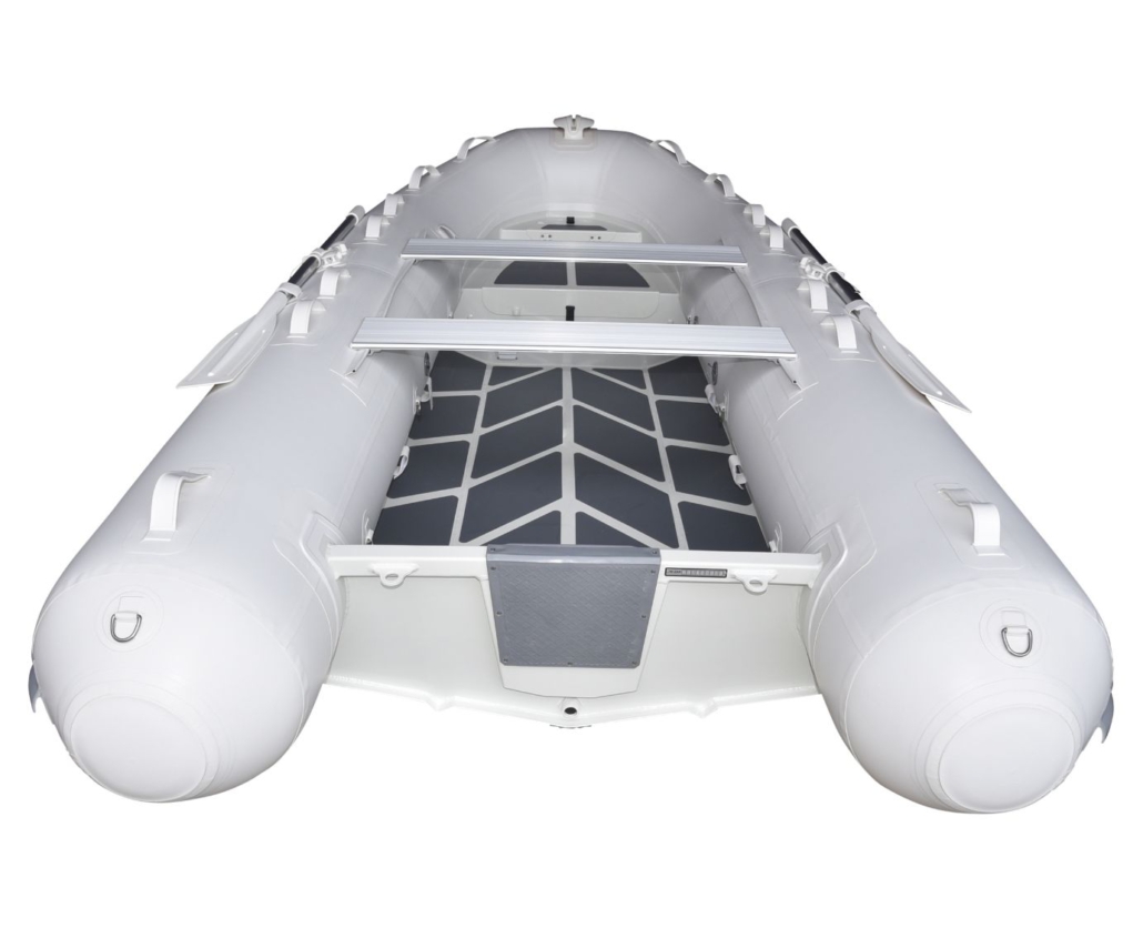 Durch den sehr leichten Aluminiumrumpf, kommt es auch mit wenig Motorleistung in Gleitfahrt. Der Rumpf wird auch nicht die Probleme von GFK Rümpfen haben. Er wird garantiert nicht mit der Zeit schwerer werden. Das Aluminium wird in speziellen Verfahren behandelt und danach pulverbeschichtet. Somit ist es salzwasserresistent und wird Ihnen sehr lange Freude bereiten.